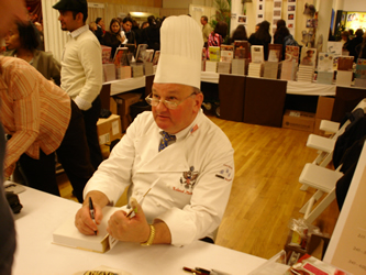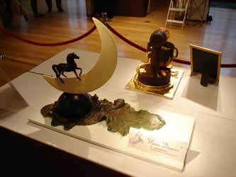 A chocolate sculpture of a Japanese pagoda with cocoa Zen garden around it (really cool!) |